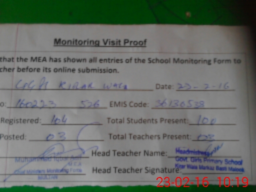 | EMIS Code: 36130538 | Name of School: GGPS KIRAR WALA | |||