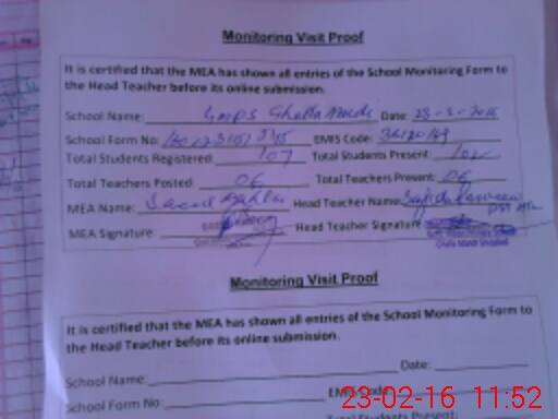 | EMIS Code: 36120169 | Name of School: GMPS GHALLA MANDI SHUJABAD | |||