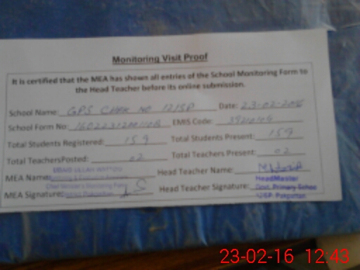 | EMIS Code: 39210104 | Name of School: GPS 12/SP P.O 8.S.P PAKPATTAN | |||