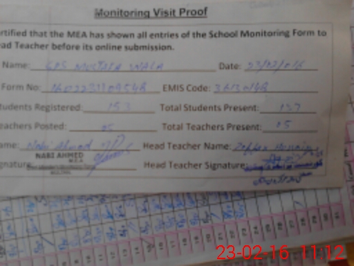 | EMIS Code: 36130148 | Name of School: GPS MUSTAFA WALA | |||