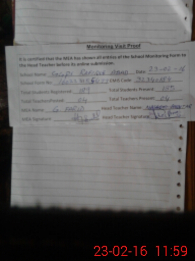 | Attendance Register | Head Teacher | MEA with School | Visit Proof |