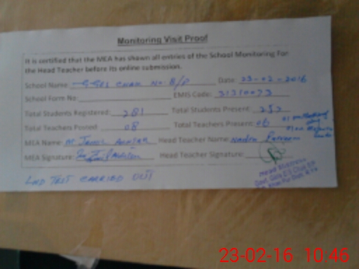 | EMIS Code: 31310073 | Name of School: GGES CHAK NO. 8/P | |||