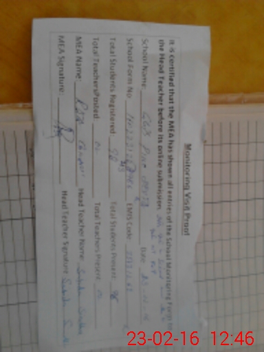 | Certified that this School was Inspected by the Undersigned MEA/DMO Today and the Information Stated Above is as Per Record. | |||||