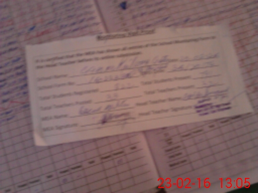 | Attendance Register | Head Teacher | MEA with School | Visit Proof |