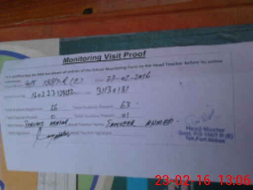 | Certified that this School was Inspected by the Undersigned MEA/DMO Today and the Information Stated Above is as Per Record. | |||||