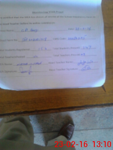 | Certified that this School was Inspected by the Undersigned MEA/DMO Today and the Information Stated Above is as Per Record. | |||||