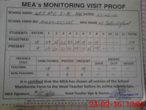 | EMIS Code: 36420639 | Name of School: GES MC 1-B, KHANEWAL | |||