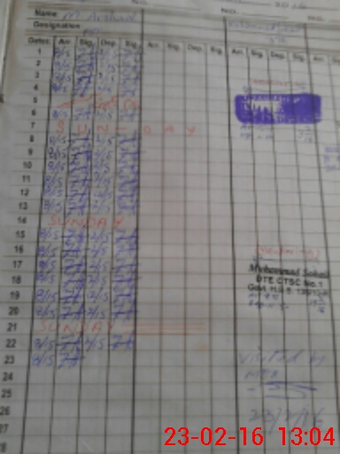 | CNIC | Full Name | Designation | R/C | Absence During Last Calender Month |