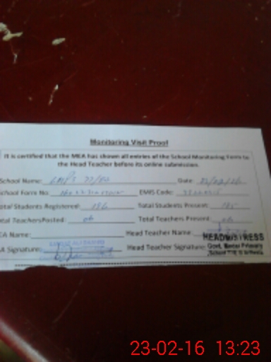 | Attendance Register | Head Teacher | MEA with School | Visit Proof |