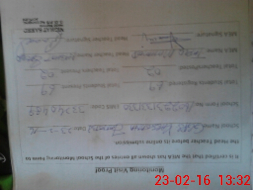| Certified that this School was Inspected by the Undersigned MEA/DMO Today and the Information Stated Above is as Per Record. | |||||