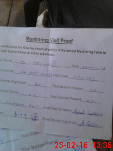 | Attendance Register | Head Teacher | MEA with School | Visit Proof |