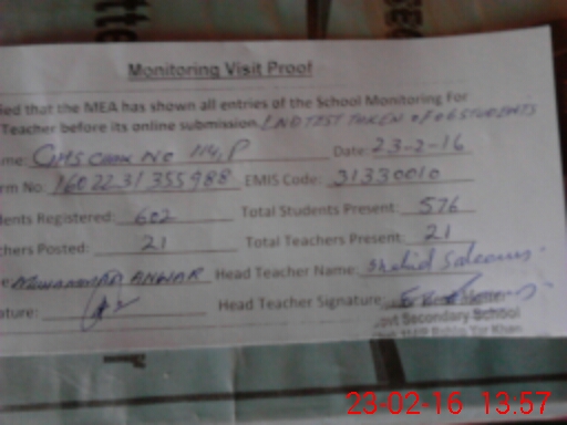 | EMIS Code: 31330010 | Name of School: GHS CHAK 114/P | |||