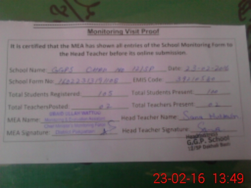 | EMIS Code: 39210580 | Name of School: GGPS 12 SP DAKHLI (BASTI KAMAL DIN) | |||