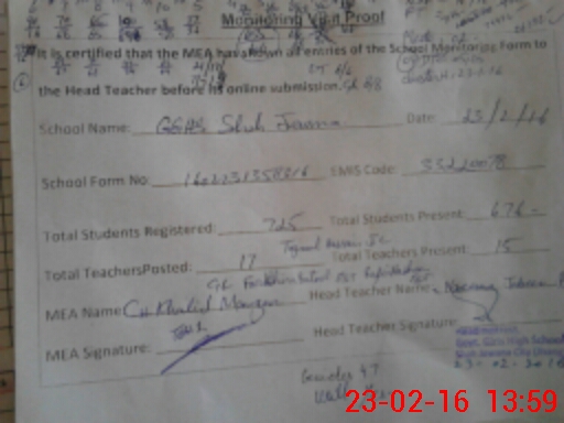 | Certified that this School was Inspected by the Undersigned MEA/DMO Today and the Information Stated Above is as Per Record. | |||||