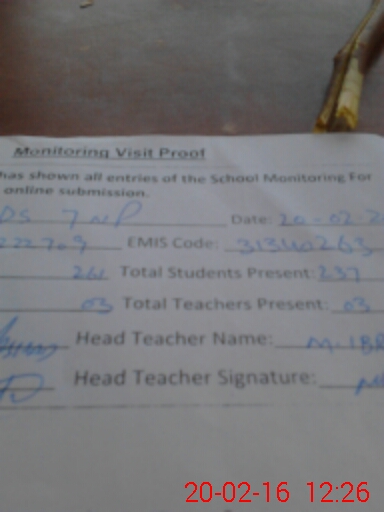 | Attendance Register | Head Teacher | MEA with School | Visit Proof |