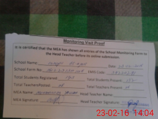 | Certified that this School was Inspected by the Undersigned MEA/DMO Today and the Information Stated Above is as Per Record. | |||||