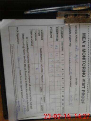 | Attendance Register | Head Teacher | MEA with School | Visit Proof |