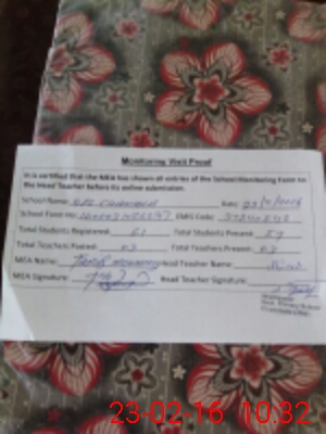 | Certified that this School was Inspected by the Undersigned MEA/DMO Today and the Information Stated Above is as Per Record. | |||||