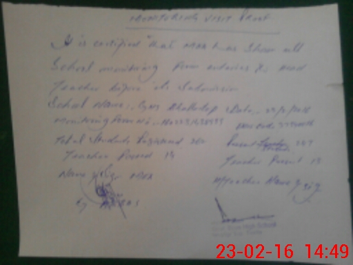 | Certified that this School was Inspected by the Undersigned MEA/DMO Today and the Information Stated Above is as Per Record. | |||||