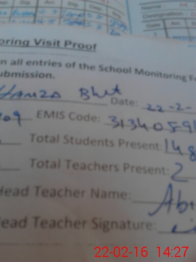 | EMIS Code: 31340594 | Name of School: GGPS HAMZA BHAIT | |||
