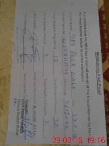 | EMIS Code: 36120112 | Name of School: GPS PEER WALA P/O THATH GHALWAN | |||