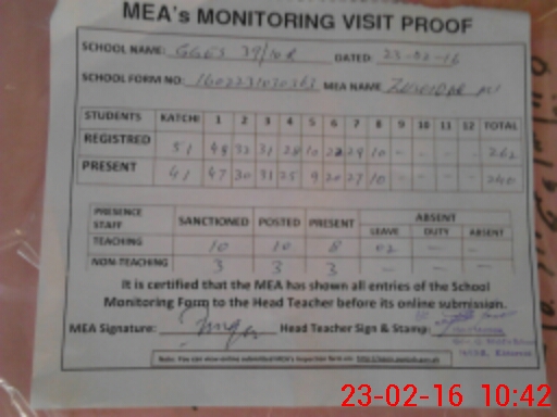 | Certified that this School was Inspected by the Undersigned MEA/DMO Today and the Information Stated Above is as Per Record. | |||||