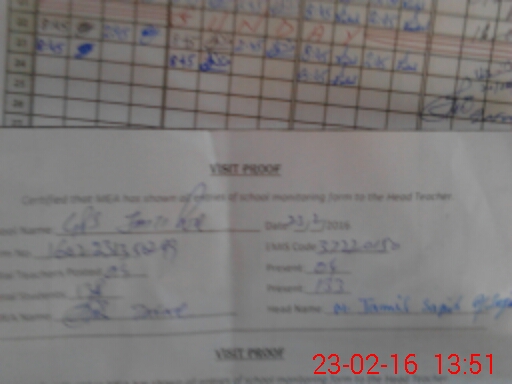 | Attendance Register | Head Teacher | MEA with School | Visit Proof |