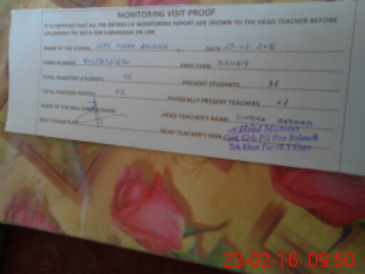 | EMIS Code: 31310819 | Name of School: GGPS PIRA BALOCH (After Noon) | |||