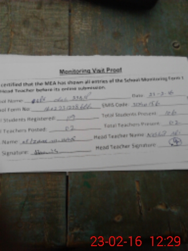 | Certified that this School was Inspected by the Undersigned MEA/DMO Today and the Information Stated Above is as Per Record. | |||||