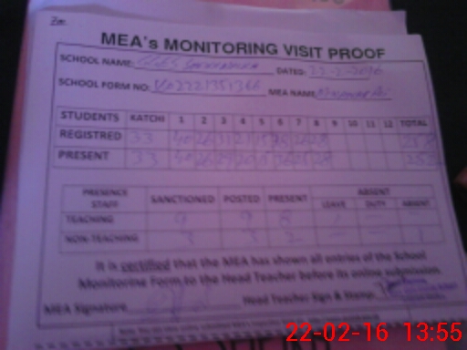 | Certified that this School was Inspected by the Undersigned MEA/DMO Today and the Information Stated Above is as Per Record. | |||||