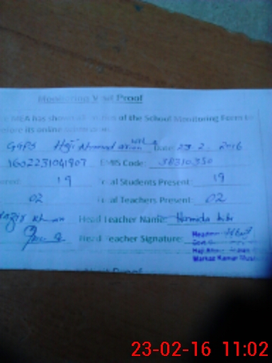 | EMIS Code: 38310350 | Name of School: GGPS HAJI AHMED ARAIN WALA | |||