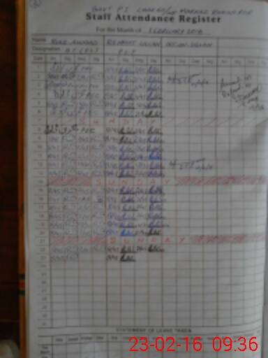 | Name: FI**** AH**** Designation: (School Headmaster's/Headmistress's) PST Phone/Cell Number: 03**** |