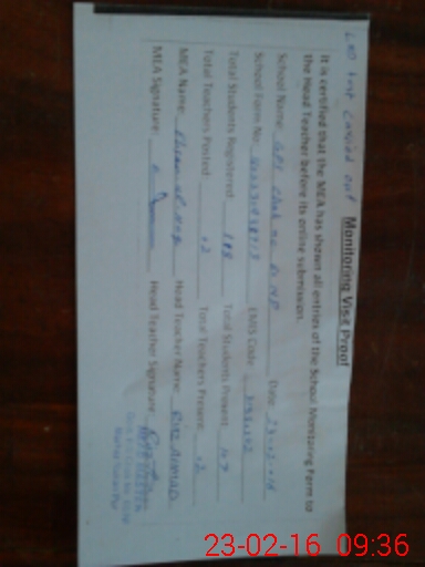 | Certified that this School was Inspected by the Undersigned MEA/DMO Today and the Information Stated Above is as Per Record. | |||||