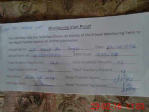 | Certified that this School was Inspected by the Undersigned MEA/DMO Today and the Information Stated Above is as Per Record. | |||||