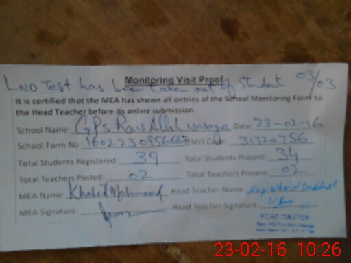 | EMIS Code: 31320756 | Name of School: GPS RAIS ALLAH VASAYA | |||
