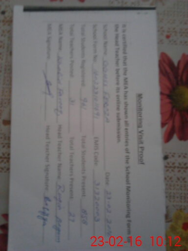 | Certified that this School was Inspected by the Undersigned MEA/DMO Today and the Information Stated Above is as Per Record. | |||||