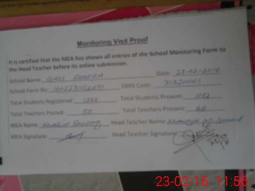 | EMIS Code: 31320001 | Name of School: GHSS FEROZAA | |||