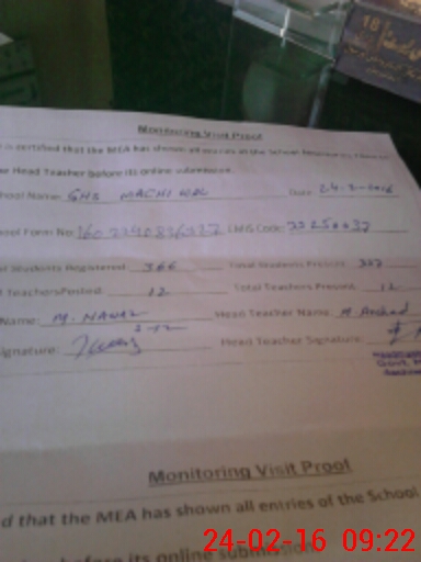 | EMIS Code: 33250037 | Name of School: GHS MACHI WAL | |||