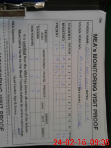 | Attendance Register | Head Teacher | MEA with School | Visit Proof |