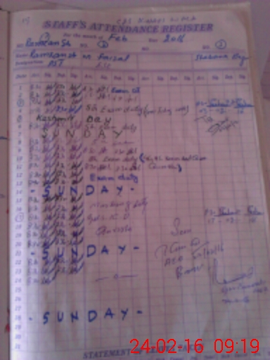 | CNIC | Full Name | Designation | R/C | Absence During Last Calender Month |