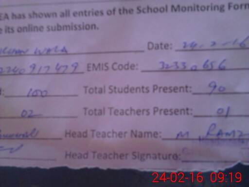 | Attendance Register | Head Teacher | MEA with School | Visit Proof |
