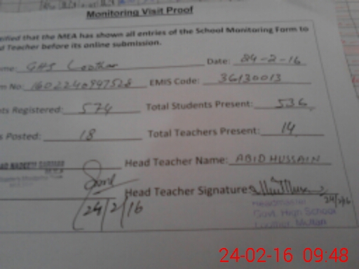 | EMIS Code: 36130013 | Name of School: GHS LOOTHER MULTAN | |||