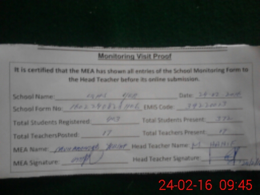 | Certified that this School was Inspected by the Undersigned MEA/DMO Today and the Information Stated Above is as Per Record. | |||||