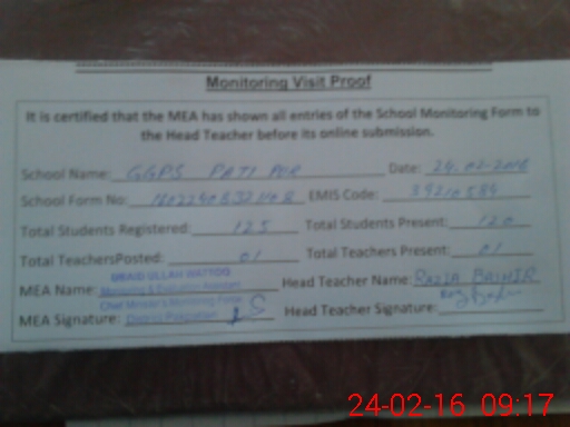 | EMIS Code: 39210584 | Name of School: GGPS PATTI PUR DAKHLI MALIK PUR | |||