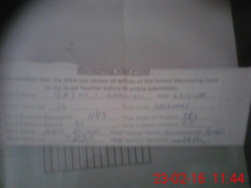 | Attendance Register | Head Teacher | MEA with School | Visit Proof |