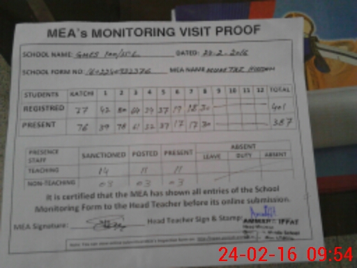 | Certified that this School was Inspected by the Undersigned MEA/DMO Today and the Information Stated Above is as Per Record. | |||||