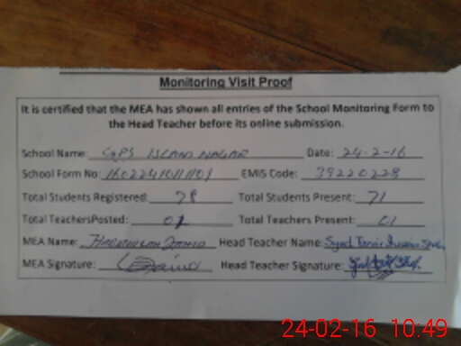 | EMIS Code: 39220228 | Name of School: GPS ISLAM NAGAR P.O 131 EB | |||