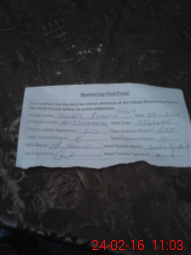 | Attendance Register | Head Teacher | MEA with School | Visit Proof |
