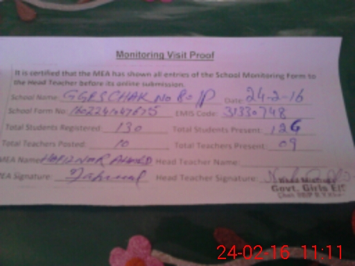 | Certified that this School was Inspected by the Undersigned MEA/DMO Today and the Information Stated Above is as Per Record. | |||||