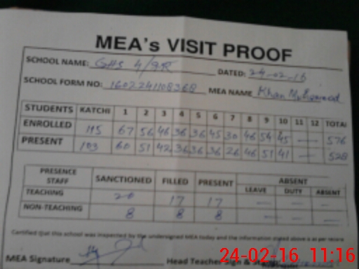 | Certified that this School was Inspected by the Undersigned MEA/DMO Today and the Information Stated Above is as Per Record. | |||||